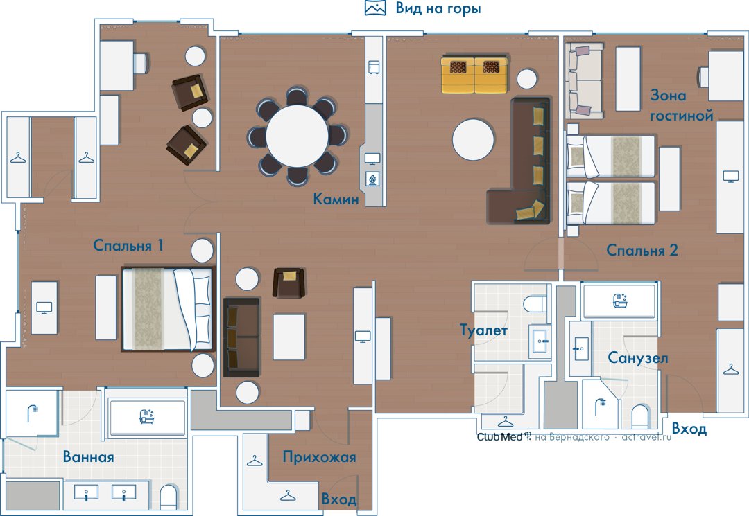 Выбрав размещение в номере категории Suite с изысканной обстановкой, вы можете рассчитывать на исключительный уровень обслуживания. В сьютах на всех этажах обоих корпусов у ва будет небольшая отдельная гостиная и великолепный вид на горы. Всего 36 номеров