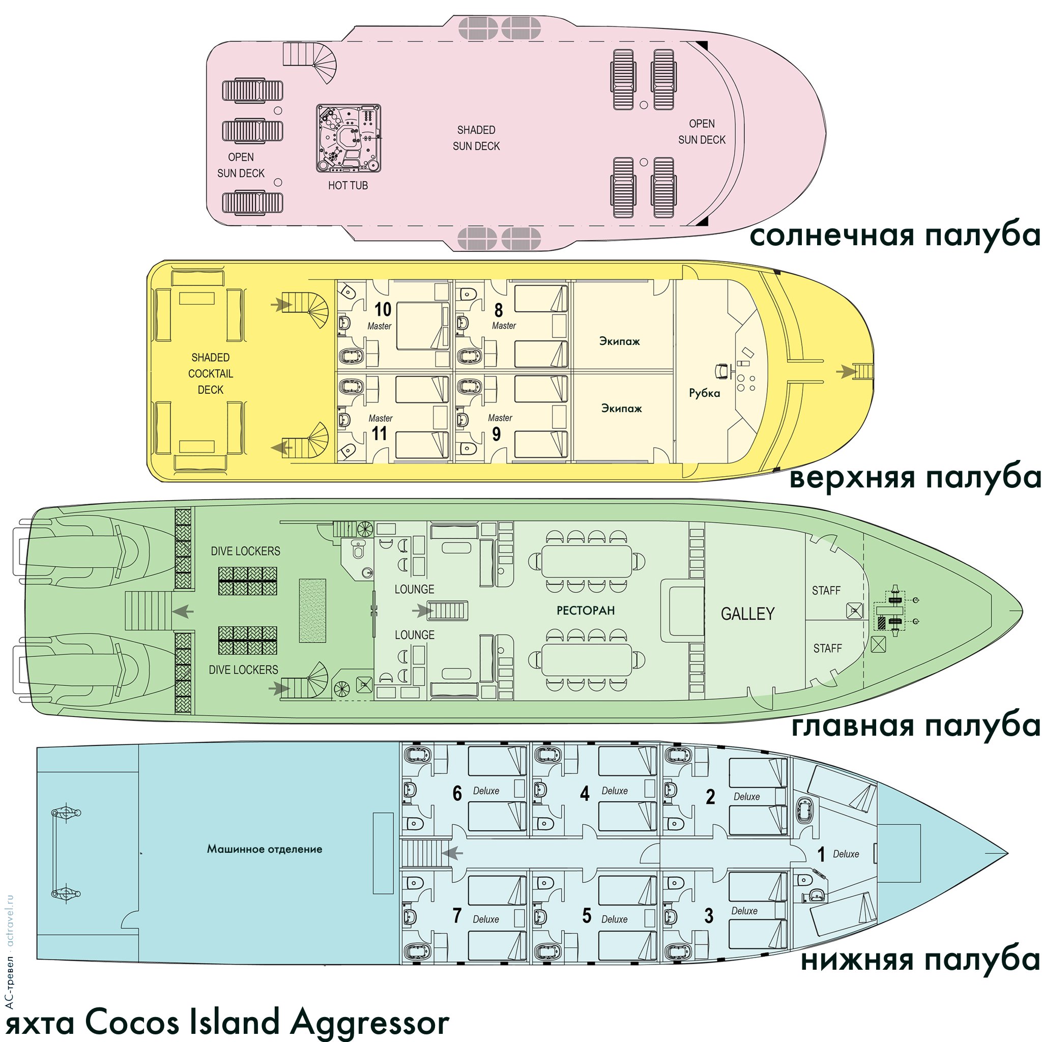 Всего на яхте Cocos Island Aggressor 11 двухместных кают.