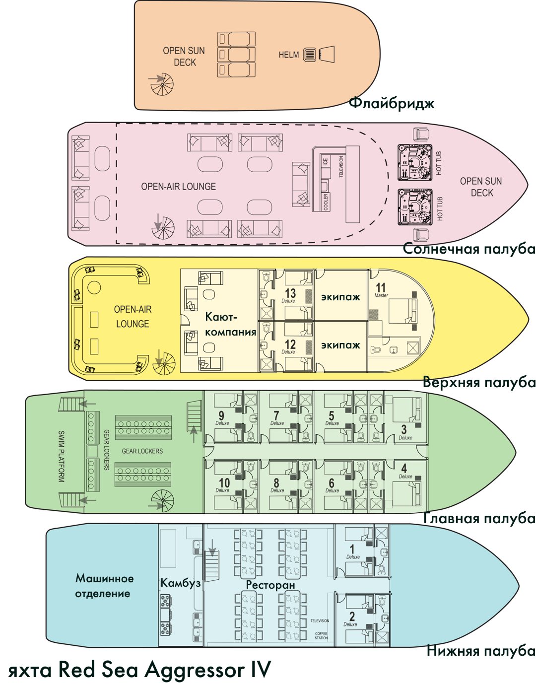 Всего на яхте Red Sea Aggressor IV 13 двухместных кают.
