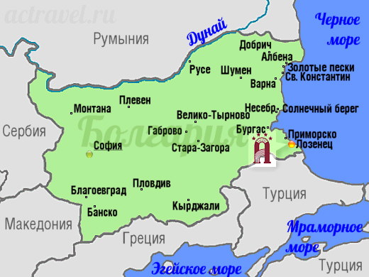 Отель находится на второй линии, в 100 м от пляжа и в 600 м от центра поселка. До города Царево 3, а до курорта Китен 6 км. До аэропорта Бургаса 60 км.