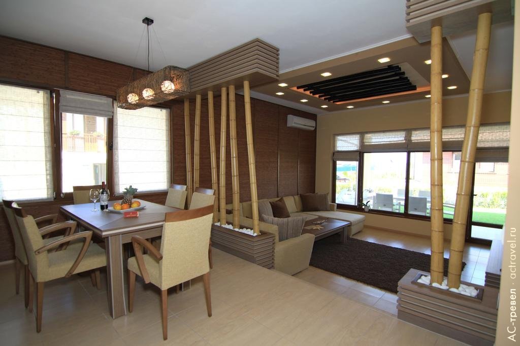 Гостиные оборудованы дизайнерской мягкой мебелью, LCD-телевизором, кондиционером. Кухня снабжена плитой, посудомоечной машиной, холодильником с морозилкой, стиральной машиной.