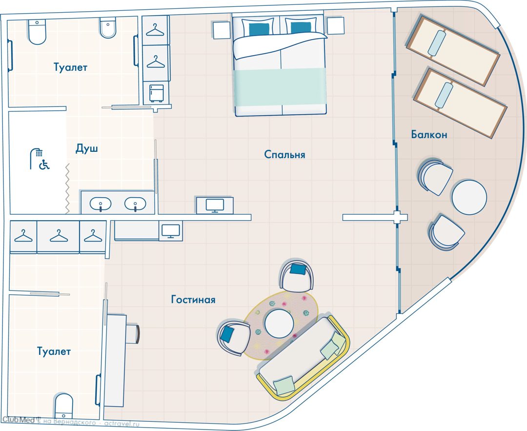 Этот просторный номер выполнен светлых тонах. Расслабьтесь на мебилированном балконе и наслаждайтесь солнцем. Номер расположен в зоне La Corte рядом с сердцем курорта.