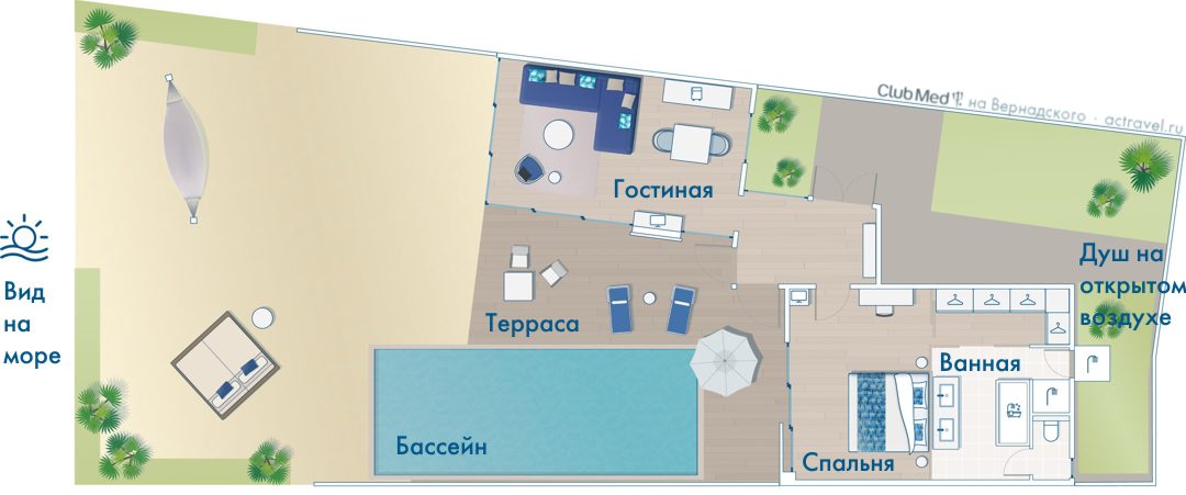 Представьте себе тихое прибежище в гавани, в котором, входя в свой номер, вы видите бесконечную синеву от вашего собственного частного бассейна до личного душа на открытом воздухе в нескольких шагах от нетронутого пляжа. Там, где вы и ваш любимый человек будете в идеальном уюте и комфорте. Расслабьтесь на шезлонге на берегу океана с книгой в одной руке и коктейлем в другой. Внимание молодоженам: вы вряд ли решите вернуться домой!