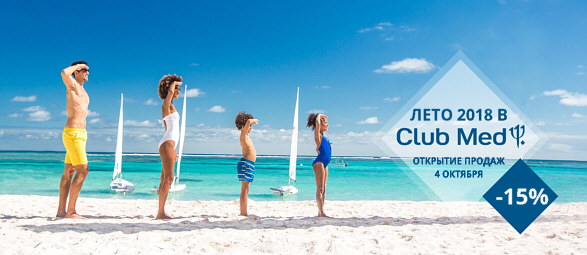 Раннее бронирование летнего сезона 2018 г. в Club Med открыто 4 октября 2017 г. Первые три дня: 4, 5 и 6 октября действуют максимальные скидки — 15%, и особые условия.