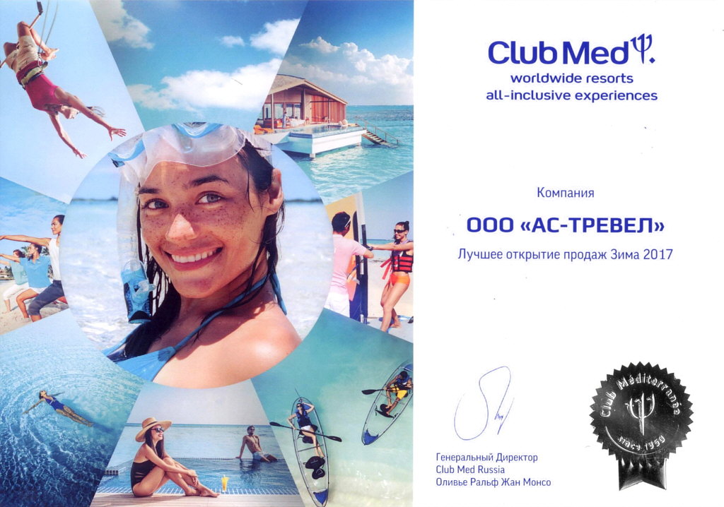 По результатам 2016—2017 гг. офис продаж Club Med на проспекте Вернадского (компания АС-тревел) получил награды Club Med в номинациях «Ведущий партнер в России» и «Лучшее открытие продаж зимнего сезона 2017».