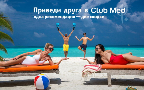 Пригласите друга, который никогда не был в Club Med, в офис продаж на Вернадского и получите двойную скидку на путешествие!