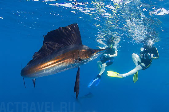 (иначе сейлфиш, от английского sailfish, латинское название Istiophorus) — крупная красивая рыба. В одной из песен Борис Гребенщиков спрашивал: «...Какая рыба в океане плавает быстрее всех?..» Так вот ответ на этот вопрос можно увидеть в ходе дайвинг-тура. Это рыба-парусник, ей ничего не сто́ит развить скорость 100 км/ч под водой, это быстрее, чем любые наземные животные, которым не нужно преодолевать огромное сопротивление воды. Все тело парусника имеет единственную цель — скорость. Вес взрослого парусника достигает центнера, длина — 2 м. Парусники, как подвижные «загонные» хищники, долго не держатся на одном месте, постоянно перемещаясь на большие расстояния в поисках кормовой базы — головоногих, тунца, скумбрии, сардины и т. д., поэтому гарантировать встречу с парусником-сейлфиш при погружении невозможно, это всегда дело удачи, хотя назвать типичные места встреч с рыбой-парусником вполне возможно.