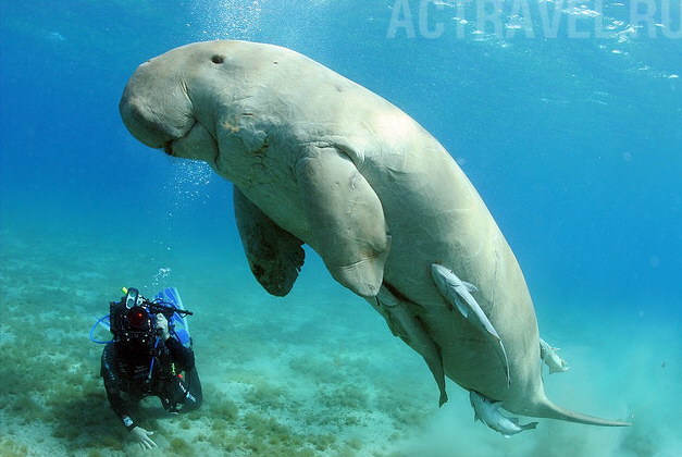 Египет, Марса Алам, единичные особи, остатки реликтовой популяции дюгоней в Красном море. Дайверы знают каждого «в лицо» и по имени. Вероятность встречи с дюгонем не очень велика и часто дайверы, прилетающие в Египет в поиске дюгоня улетают ни с чем.