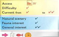 Риф представляет собой 10-метровую стену, ведущую к 45-градусному склону с вершинами, заросшими мягкими кораллами.