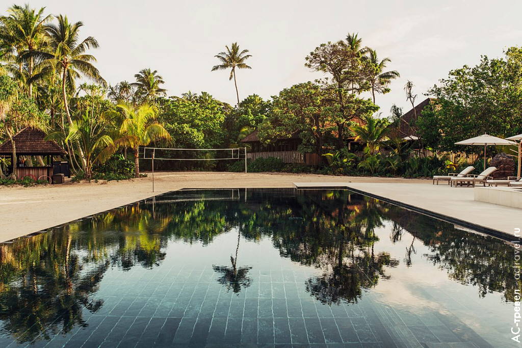 Вдоль нетронутого пляжа с белым песком, уникального в мире построены 1 мастер-вилла, 2 полу-люкса и 13 бунгало, все прекрасно оборудованы и тщательно оформлены в строгом и изысканном стиле.