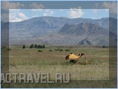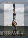 Памятник кочевнику-чабану на холме перед въездом в Кызыл. Показательно, что персонаж смотрит не на столицу, а в степь.