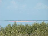 Розовая «пенка» на воде — на самом деле стая фламинго