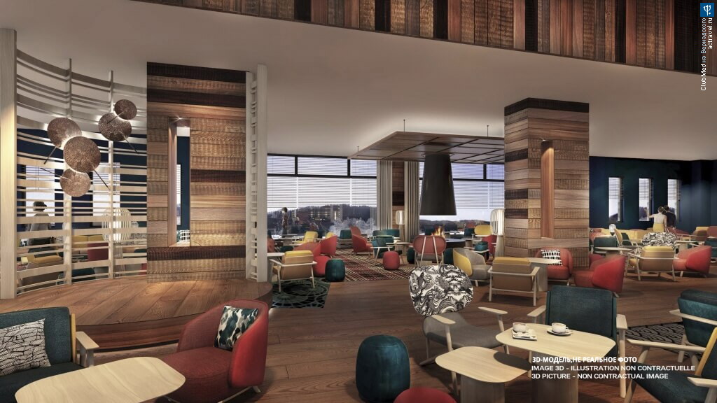 Мне очень нравится центр [курорта] с его баром. Это место — дом бодрящего и живого духа, который выражает самобытность Club Med. Мой дизайн пытается воплотить эту бодрящую и очень дружелюбную атмосферу в жизнь посредством архитектуры.