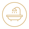 На со вкусом выложенном мраморном полу занимает почетное место соблазнительная ванна с откидной крышкой и элегантными когтистыми ножками, приглашая вас расслабиться и отдохнуть.