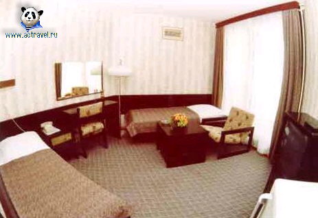 Номер состоит из одной комнаты, санузла, прихожей, балкона. В номере имеются две кровати, стул, кресло, столы: журнальный, туалетный; прикроватная тумбочка с радиопанелью, цветной телевизор, холодильник, телефон, торшер. Санузел оснащен душем, умывальником, унитазом. В прихожей — встроенный шкаф.