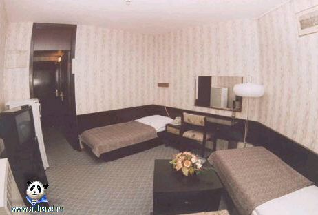 Номер состоит из одной комнаты, санузла, прихожей, балкона. В номере имеются две кровати, диван-кровать, стул, пуфик, столы: журнальный, туалетный; две прикроватные тумбочки (одна — с радиопанелью), цветной телевизор, холодильник, телефон, торшер. Санузел оснащен душем, умывальником, унитазом. В прихожей — встроенный шкаф.