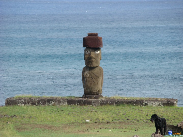 Моаи с восстановленной пукао и реконструированными коралловыми глазами