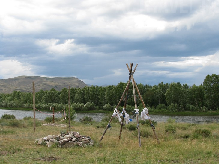 Рядом с юртами ритуальное шаманское место