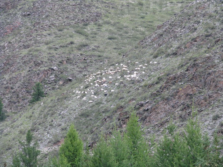 По склону горы проходит стадо коз