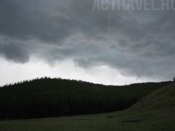 Перевалила через гору и быстро спускается к нам сильная гроза с дождем и градом