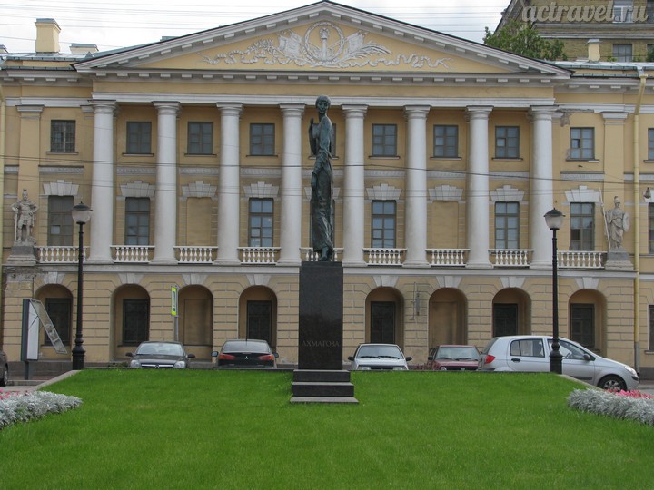 Тонкая Анна Ахматова стоит напротив Крестов