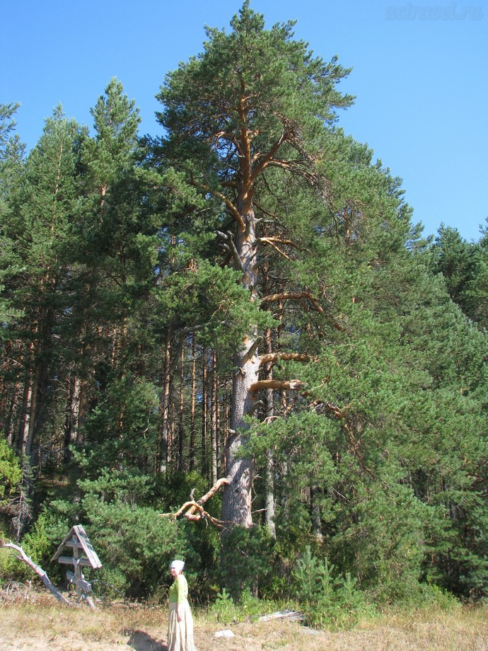 Реликтовая сосна в два с половиной обхвата и поклонный крест под ней