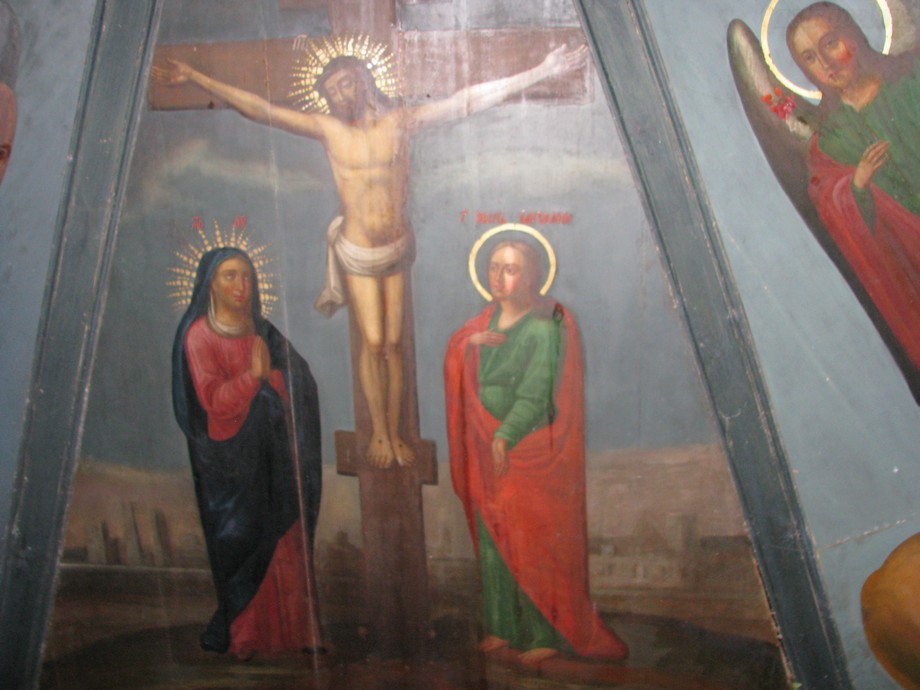 Распятие с предстоящими на одной из граней «небес» часовни Параскевы Пятницы из Тырышкина