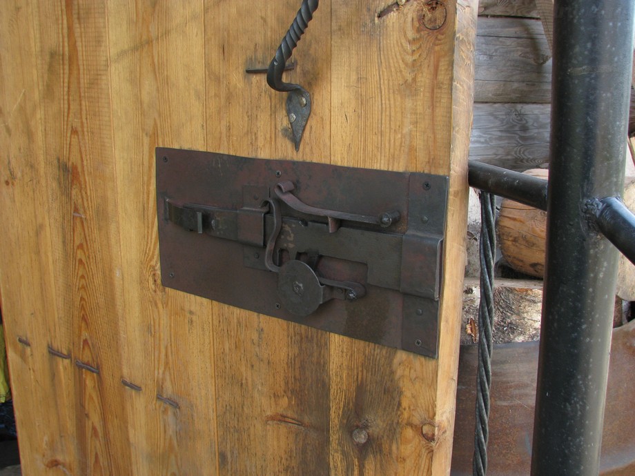 Дверь кузницы запирается на самодельный замок