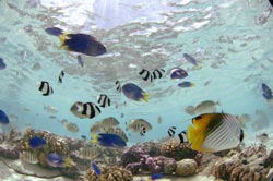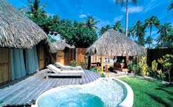 Особые стеклянные столики позволяют гостям бунгало на воде восхититься красочной подводной жизнью лагуны. C помощью отодвигающейся столешницы можно покормить рыбок. С просторных наружных террас приятно наслаждаться великолепным видом лагун и величественной горы Отеману.
