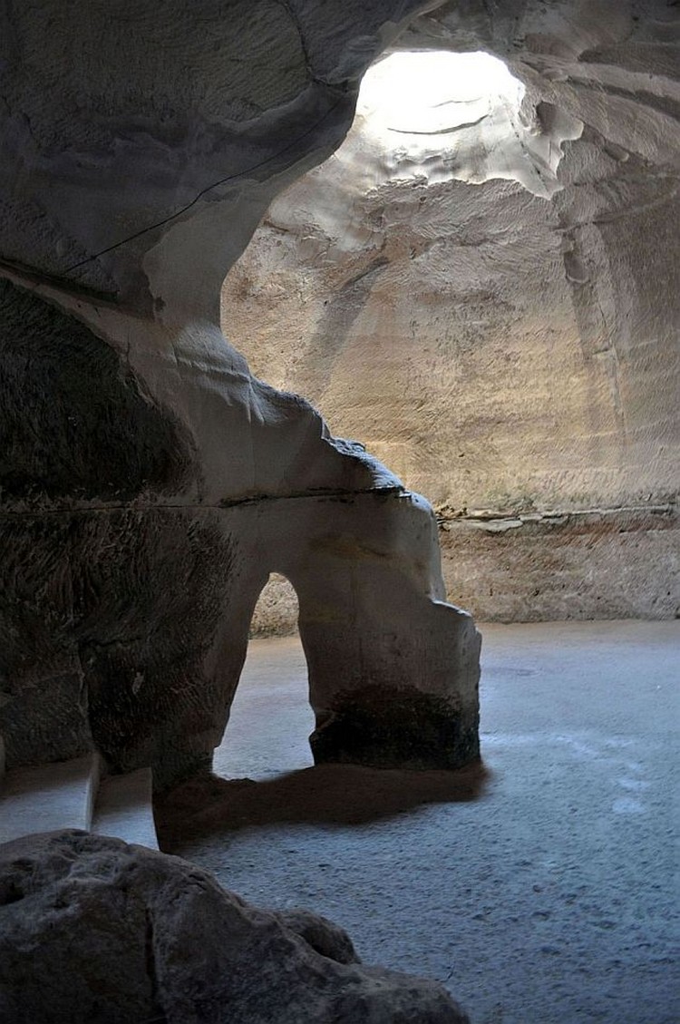 Так как подземный город из столетия в столетие перестраивался, большинство построек учёные могут датировать 3-2 век до нашей эры. Но это не значит, говорят они, что до этого времени подземного города не существовало. Кстати, древний город раскинулся на территории более 500 гектаров. Вот такой гигантский подземный лабиринт. Теперь это территория заповедника Бейт Гуврин.