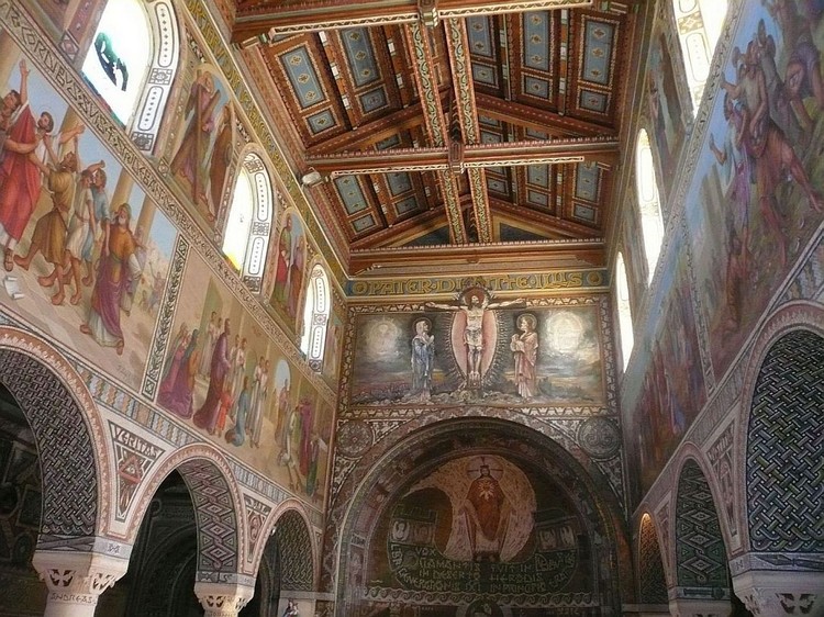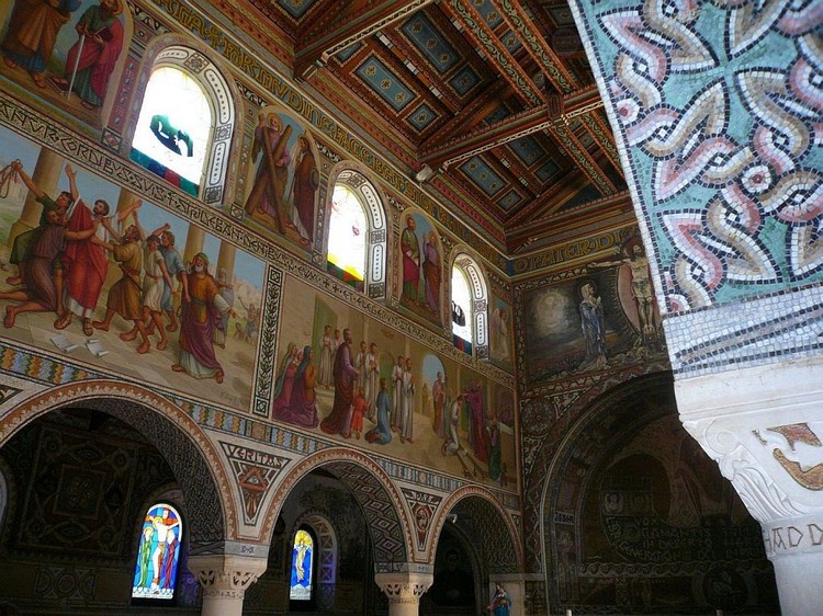 Церковь маленькая, но внутри пышно оформлена: там очень красивые фрески и мозаика.
