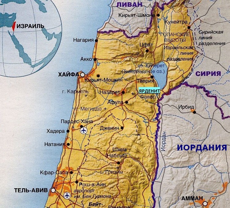 Ярденит находится к югу от Тверии, в том месте где река Иордан вытекает из озера Кинерет.