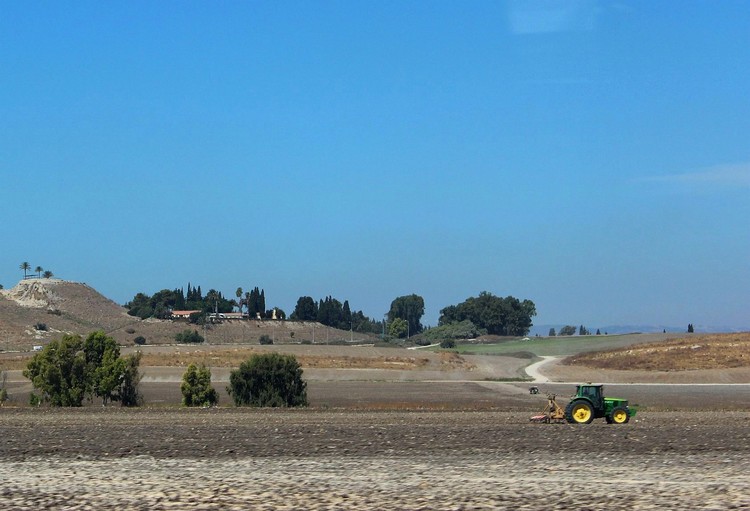 Битва произойдёт, разумеется, не на самой горе, а возле неё, в долине Изреель. Там, где на фотографии спокойно пашет землю трактор.