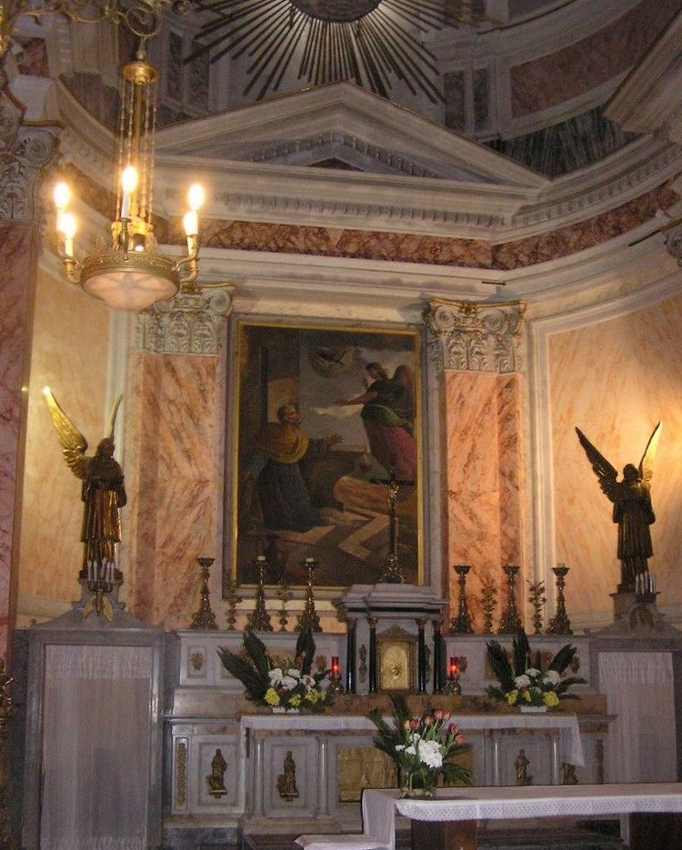 Одной из главных настенных росписей церкви является картина видения Святого Петра на крыше дома Симона-кожевника ↓