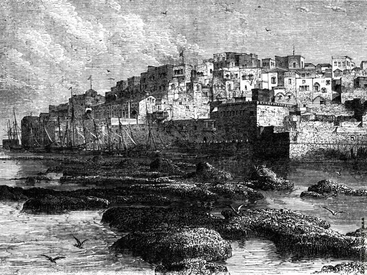 Порт Яффы около 1870 г. (Гравюра из книги: Seward W.H) ↓