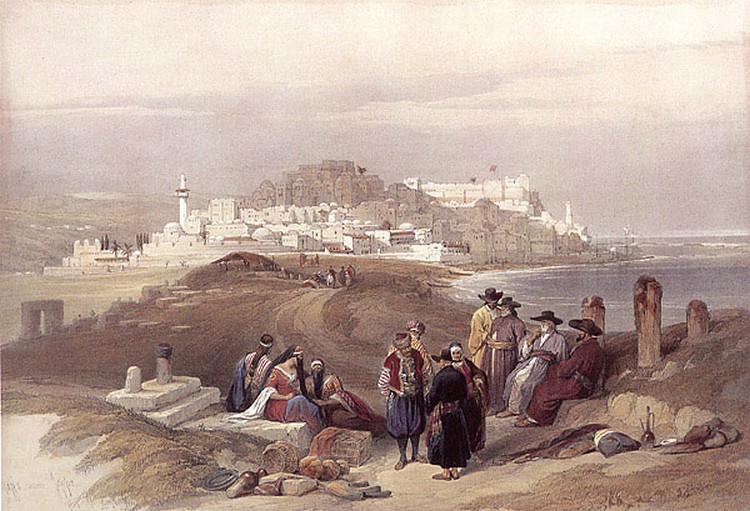 Вот его акварельный рисунок Яффы (1838 год) ↓