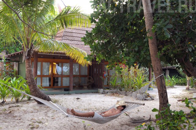 Весь остров представляет собой ухоженный парк, где растут пальмы, папайя и различные цветущие деревья и кустарники. В кронах деревьев гнездятся попугаи. От любого бунгало-буре до воды максимум метров 20.