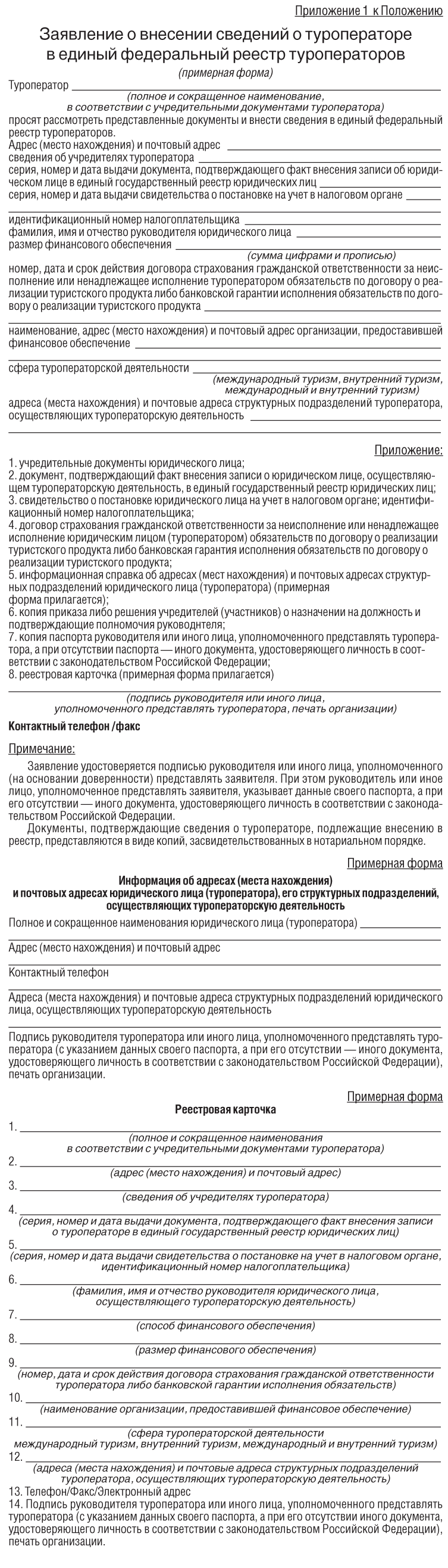 1.2. Форму единого федерального реестра туроператоров (приложение N2).