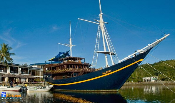 Ресторан отеля Manta Ray Bay Resort можно назвать самым оригинальным во всей Микронезии: в качестве ресторана здесь используется 55-метровая векового возраста индонезийская шхуна «Mnuw». Три обеденных зала, два бара, кухня, даже собственный пивной завод — все находится в корпусе парусника.