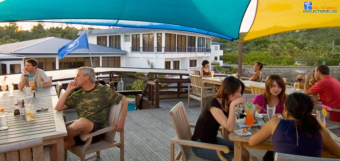 Территория курорта включает в себя здание отеля (3 этажа), дайв-центр, фото и видео студии, бассейн, плавучий ресторан и пирс со скоростными катерами.
