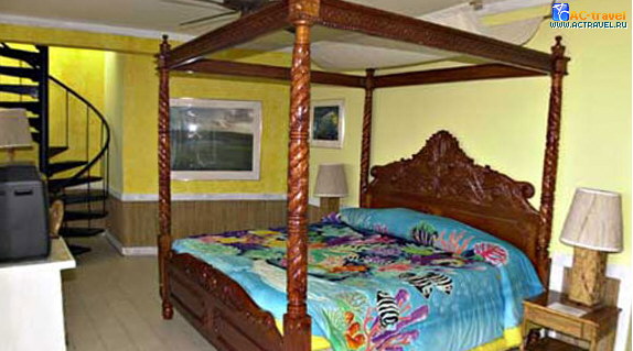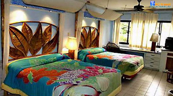 В отеле Manta Ray Bay 23 комнаты: 1 Deluxe с видом на океан (джакузи и минипалуба), 13 кают с видом на океан и 9 видом в сад. Все каюты оснащены кондиционерами, потолочными вентиляторами, междугородними телефонами, холодильниками, TV и Video аппаратурой. В каждой имеется отдельный санузел с горячей водой и встроенным феном. Также в каютах с видом на океан имеется отдельный балкон. Комнаты декорированы в экзотическом стиле. Мебель из натуральных материалов с тропическими мотивами, а экземпляры тропических растений вы увидите везде. Каждая комната носит название какой-либо рыбы и украшена фотографиями и рисунками особенных видов рыб.